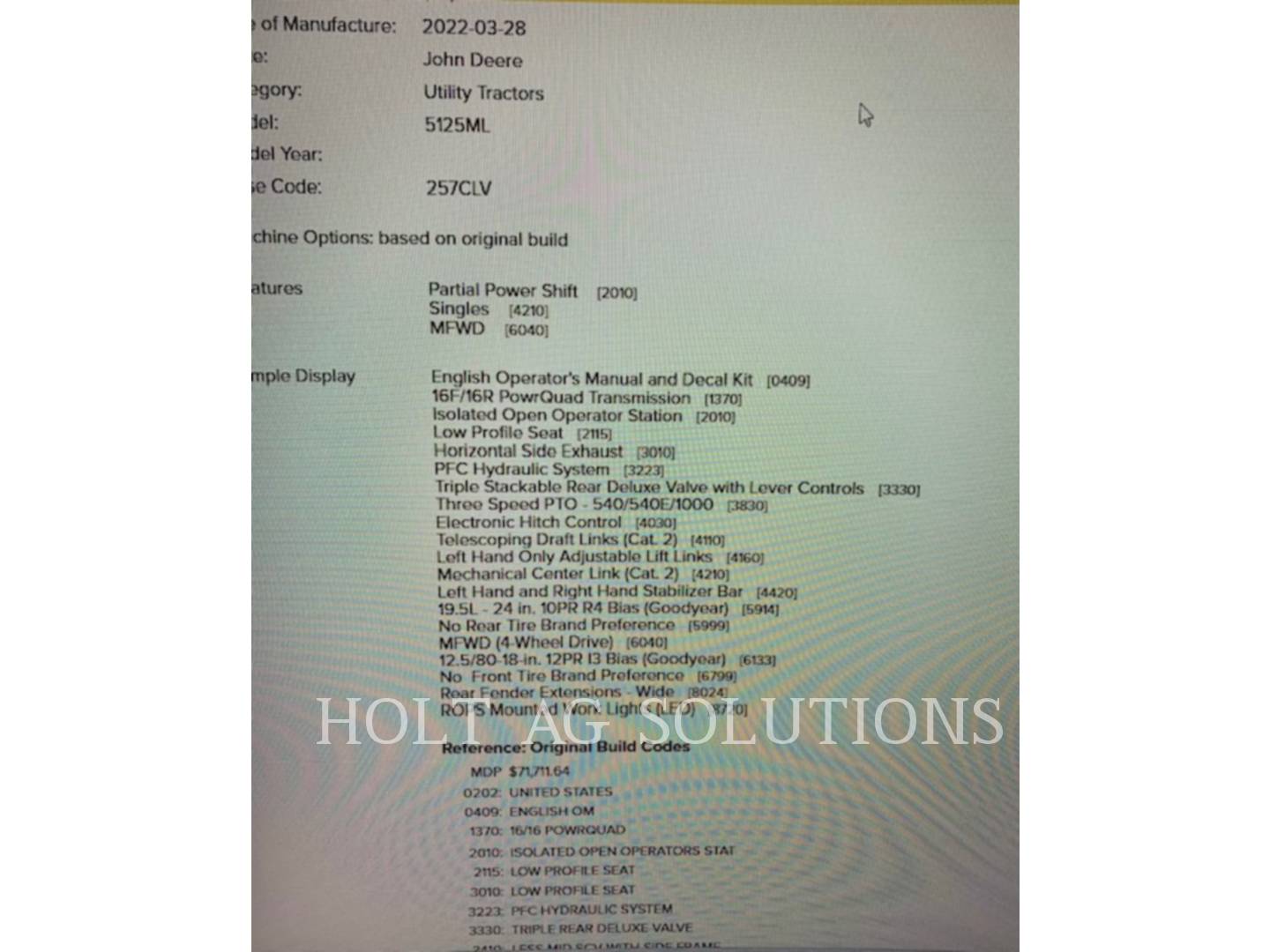 Serial Num: 1LV5125MPNM703051